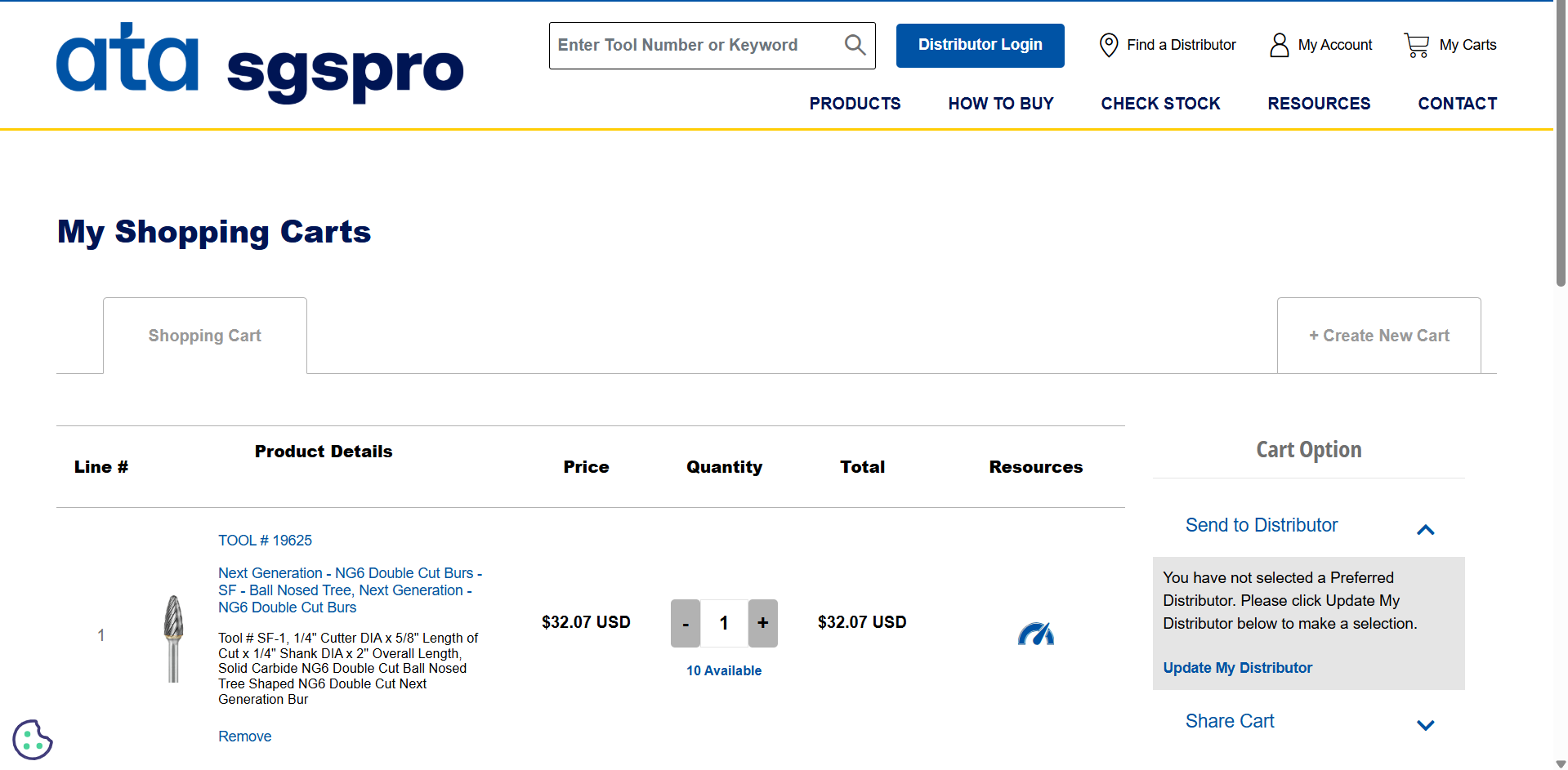 Create a website account to place an order with your distributor directly from ATAtools.com. After creating your ATAtools.com account, you're able to add tools to your "shopping cart." From there, you can send your cart directly to your distributor in one click to place your order of high performance holemaking tools. It's that easy.