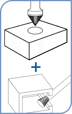 • High performance multipurpose bur combining a countersink 90° shape and a countersink 90° shape for efficient grinding of complex parts