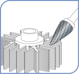 The NG6 Double Cut Cone Burs are optimized for fast, efficient grinding of steel, stainless steel, cast iron, and nickel-based alloys, with a patent-pending cutting edge and Accelerator-P coating for durability.