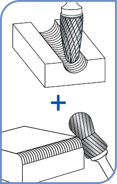 • Includes radius geometry and inverted curve design ideal for chamfering or blending a wide variety of materials