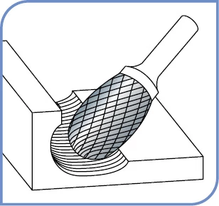 Oval - Double Cut Burs are perfect for shaping hard metals, offering enhanced chip evacuation and control with their cross-cut design for consistent performance and precision.